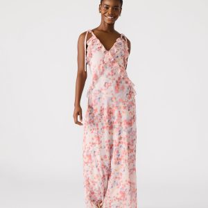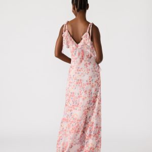 Be the center of attention in the stunning ADALINA dress. This dress features a v-neckline and ruffle detail that will make you stand out on any occasion. With its sleeveless design, this maxi dress is the perfect addition to your wardrobe.