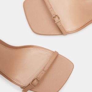 The AILENE sandal is set on an architectural bar heel with 2 slim buckled straps securing this subtle dressy look for an adjustable fit.