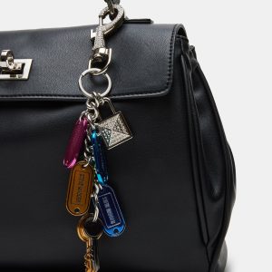 The ALFEE bag is a versatile, soft, and stylish shoulder satchel tote. Its spacious interior includes a center divider for easy organization, along with a practical back slip pocket and a secure turn lock closure. For added convenience, the bag features a chain crossbody strap. The playful multi-colored key tag bag charm adds a touch of flair. Elevate your daily style with this essential bag, complete with a practical interior pouch for maximum organization.