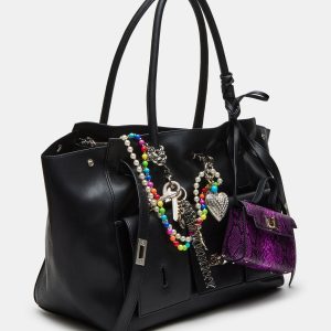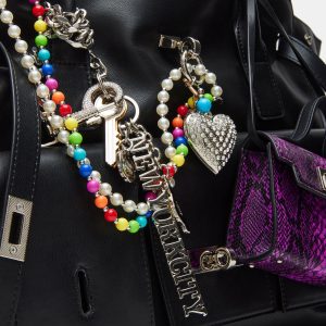 Expertly crafted, the AVERYY bag is a versatile shoulder satchel tote bag designed for both style and functionality. With a secure turn lock closure and interior back and front wall pockets, this bag ensures your belongings stay safe and organized. The colorful bead swag chains, rhinestone heart charm, and attachable top-handle micro bag charm add uniqueness to your look.