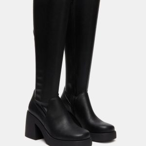 - Square toe platform block heel knee boot