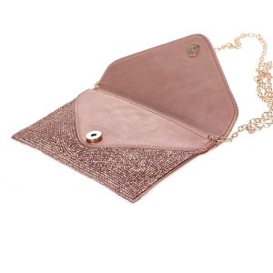 Tiny rhinestones blanket BSWAGGER’s face, transforming this otherwise simple envelope bag into a sparkling statement style. Rock this flashy new favorite as a crossbody, or tuck its delicate chain strap inside and carry as a clutch.