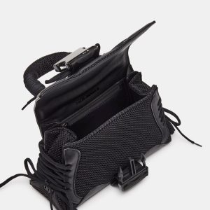 The DIEGO bag is a structured trapezoid bag with athletic-inspired details like mesh overlay panels, sneaker style lacing, and an oversized quick release buckle closure.