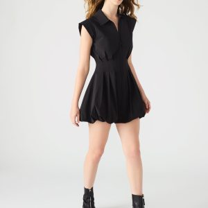 The DYANNE dress is a stylish mini dress featuring a zip front and bubble hem in tech nylon. With a collared neckline, this dress is perfect for any occasion and provides a modern, chic look. Made with high-quality materials, it offers both comfort and durability. Get ready to turn heads and stand out in this must-have dress.