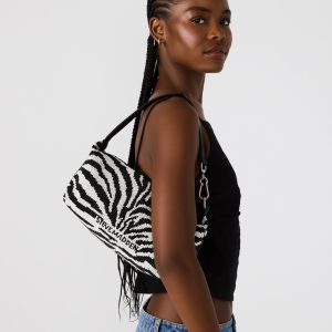 Expertly designed, the EMERSYN bag boasts fully beaded details and a logo design beaded into the bag. With hardware to attach charms and secure zipper closure, this bag also features a back wall zipper pocket for additional storage. Exude style and functionality with this chic accessory.