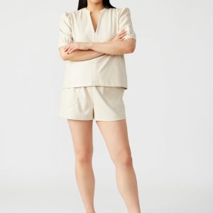 Crafted for comfort and style, the FAUX THE RECORD short features a wide elastic waistband that is both chic and versatile. The faux leather material adds a touch of ruggedness, while the pull-on design allows for easy wear.