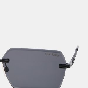 The FINNIAN sunglasses in black provide a sleek and stylish accessory for your sunny days. Made with shiny black opaque material and solid smoke lenses, these sunglasses are sure to protect your eyes while making a bold statement. Elevate your look with these high-quality shades.