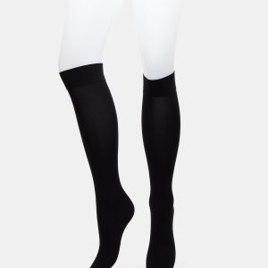 hosiery feature an open fishnet construction with a reinforced toe, heel, and cuff.