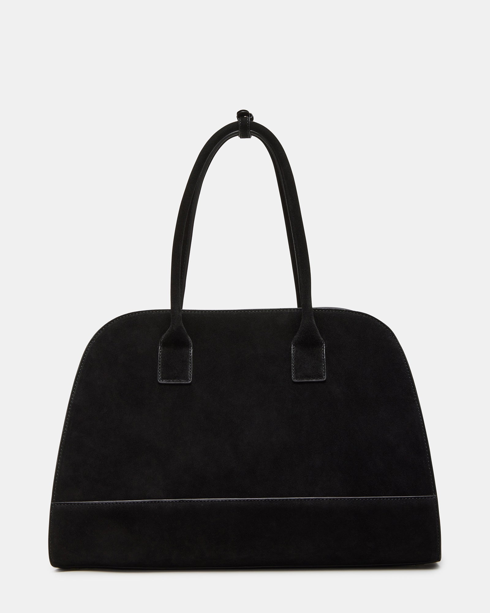 The HEIDEE bag is the ultimate everyday shoulder bag tote. Made with suede materials, it features an inside zip pouch for secure storage, a convenient snap button closure, and stylish buckle detail on the shoulder straps. Stay organized and look fashionable with this must-have accessory.