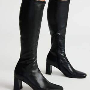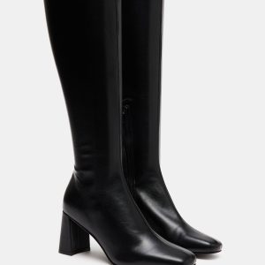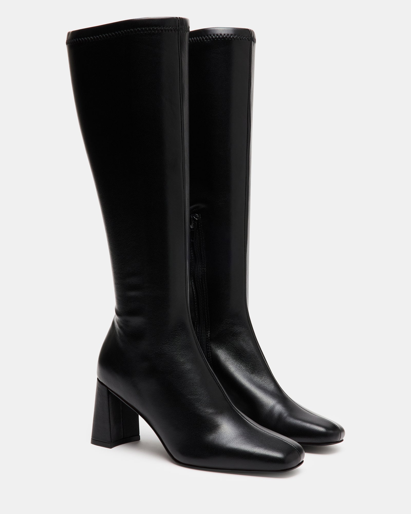 boot a calf-defining fit while an angled block heel and a square toe giving this style a sharp finish.