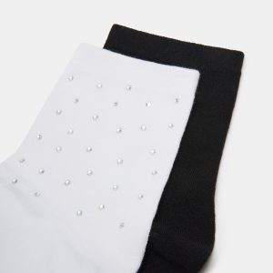 Introducing our ICED SOCKS, a must-have for any fashion-forward individual. This 2-pack set showcases a delicate touch of glitter and elegance on the white sock, complemented by a classic black sock, creating versatile options for any ensemble. Crafted from premium materials for optimal comfort and quality.