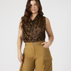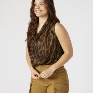 Effortlessly elevate your wardrobe with our JAYDE mock neck cowl bodysuit. Designed with a leopard print and blouse silhouette, this washed satin bodysuit adds a touch of style to any outfit.