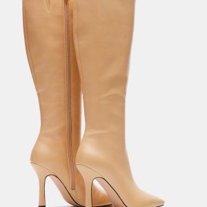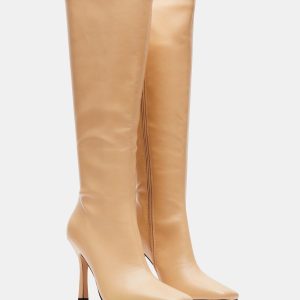 A square toe and a stiletto heel give the KALANI knee boot a sharp angular look with a hidden side gore ensuring room for comfortable movement.