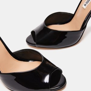heel with a retro-inspired peep toe design on the slide strap at the front.