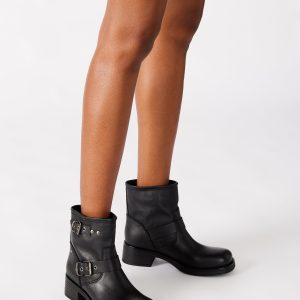 Elevate your style with the RAMPANT moto boot. Constructed with an ankle bootie design and sturdy lug sole, these boots are perfect for making a statement. The sleek leather adds a touch of sophistication to any outfit.