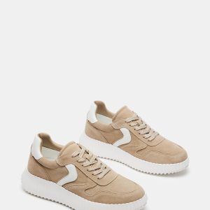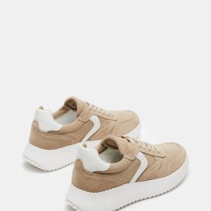 The SHEREEN sneaker features a contrasting panel design with a matching ribbed flatform contrast sole.