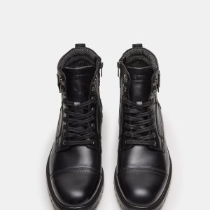 Introducing the SNYDER ankle boot, perfect for those looking for style and convenience. With buckle detail ornament and lace-up construction, this boot offers a trendy look while the inside zip and heel tab provides easy on and off. Upgrade your shoe collection with this must-have piece.
