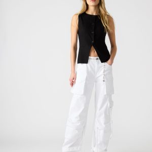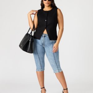 The WESLEY top is a professional and versatile button-up vest top that is perfect for completing any outfit. Made from high-quality materials, this top offers both comfort and style. With its sleek design and functional buttons, it’s a must-have addition to any wardrobe.